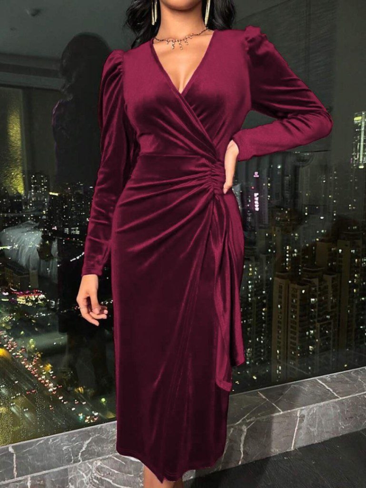 Начало РОКЛИ дамска рокля кадифе J72339 бордо