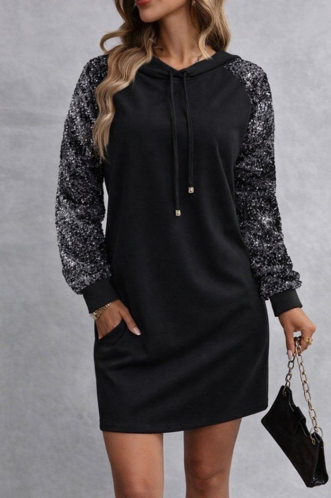 дамска рокля с връзки джобове и пайети J72364