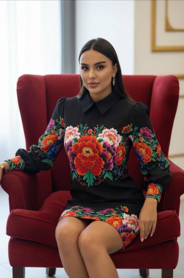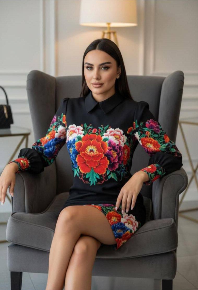 дамска рокля сатен щампа NI2861 черен