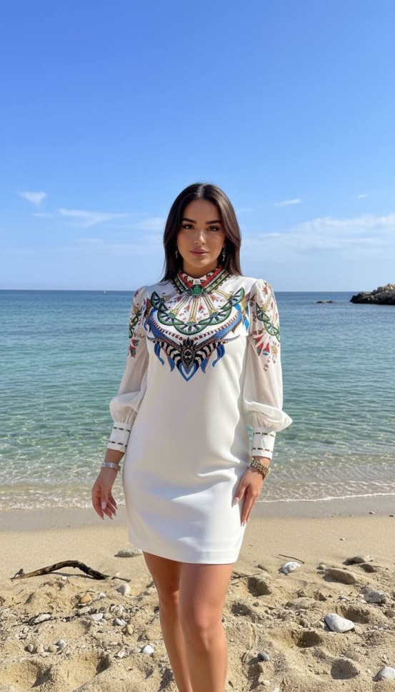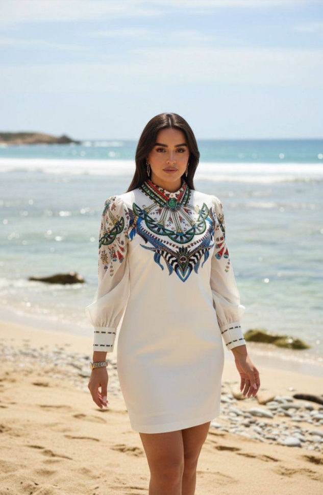 дамска рокля сатен щампа NI2861 бял
