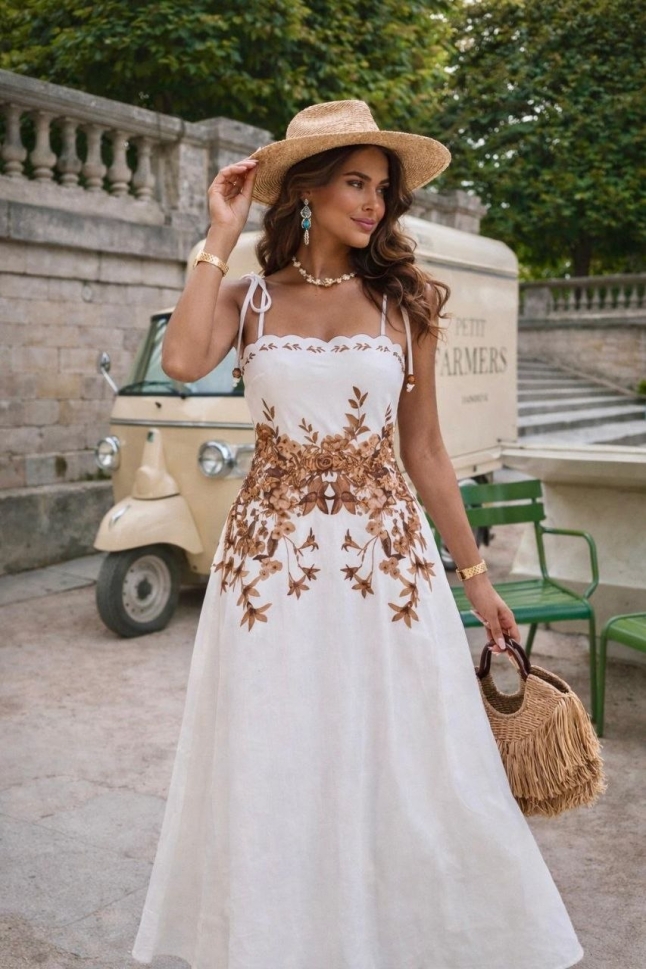 Начало ПРЕМИУМ МОДЕЛИ дамска рокля с шарки AS7582 кафяв/бял