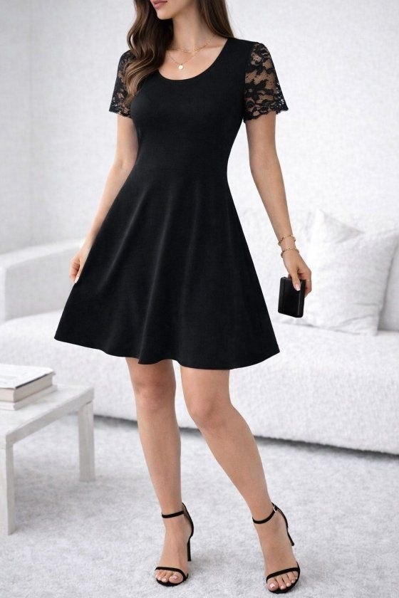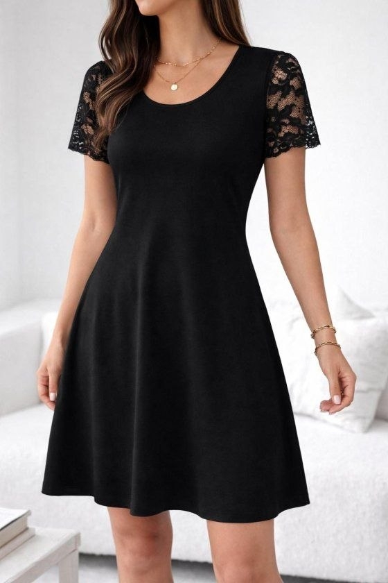 дамска рокл с дантела на ръкавите J62385