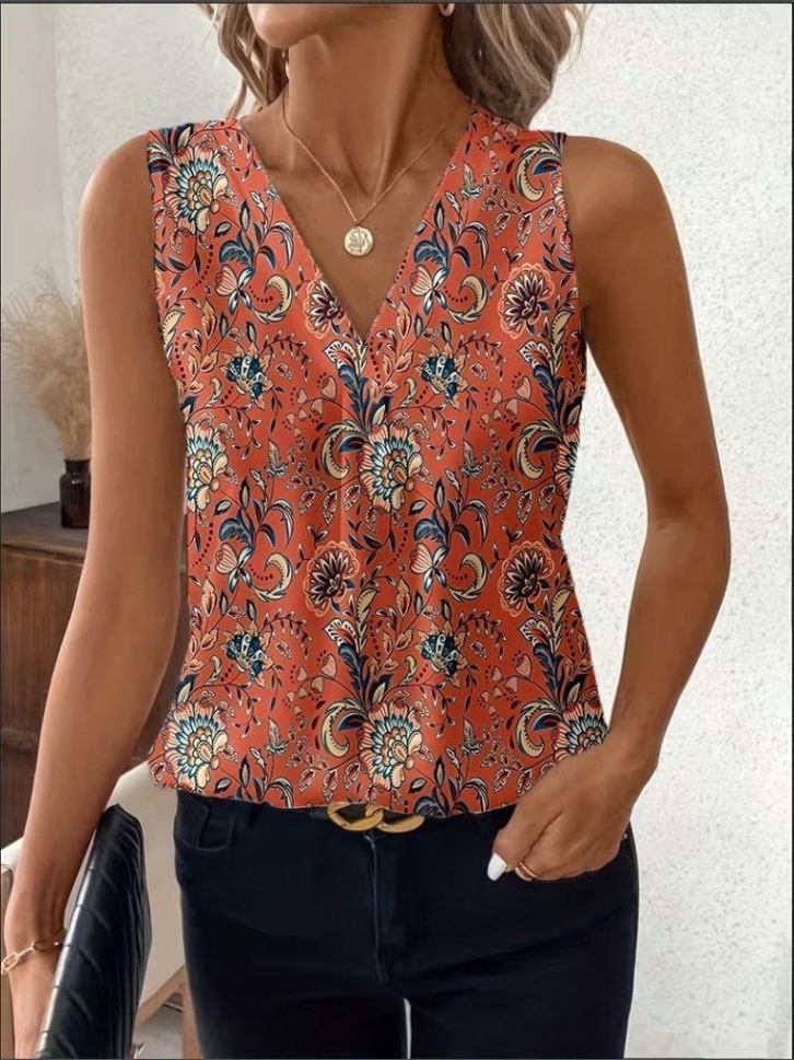 дамска блуза с Vдеклоте и шарки J62286 розов