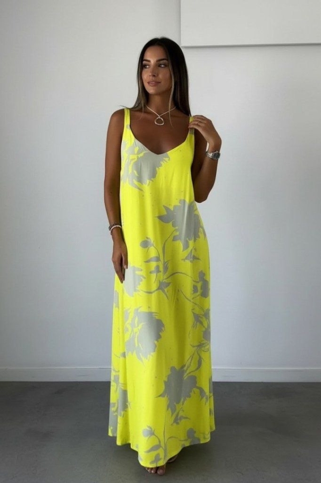 дамска рокля с шарки J71387 жълт
